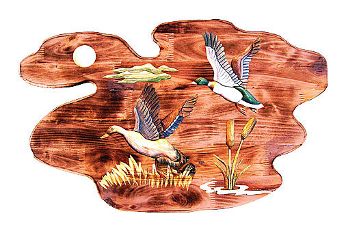 The Burly Bears Duck Intarsia is 23" by 15". It is hand crafted to ensure quality and uniqueness. Because it is hand crafted, each is different. No two are exactly the same. This beautiful piece of art will make a lovely addition to your home, cabin, or lake house. No shipping to Alaska, Hawaii, or Canada.