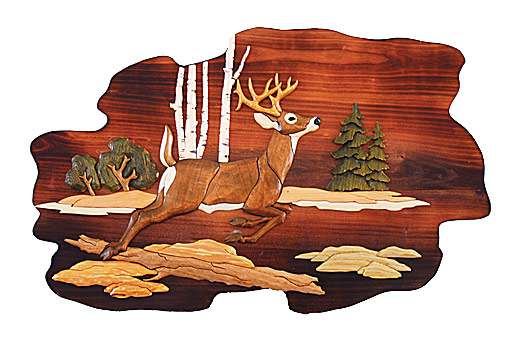 The Burly Bears Deer Intarsia is 23" by 15". It is hand crafted to ensure quality and uniqueness. Because it is hand crafted, each is different. No two are exactly the same. This beautiful piece of art will make a lovely addition to your home, cabin, or lake house. No shipping to Alaska, Hawaii, or Canada.